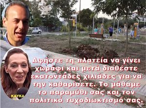 Αλλά όπως καταλαβαίνετε για να ξαναγίνουν πάλι πλατείες οι πλατείες, έπρεπε να καταστραφούν και να δωθούν εκατομμύρια από τον Δημοτικό κουρβανά για τις ανακατασκευές. Κάποιοι εγκέφαλοι επινόησαν αυτόν τον τρόπο για να γεμίσουν τους τραπεζικούς λογαριασμούς τους.