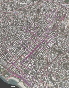 Στον χάρτη που ακολουθεί απεικονίζονται με μωβ χρώμα οι νέοι αγωγοί που θα κατασκευαστούν και με κόκκινο χρώμα το υφιστάμενο δίκτυο ομβρίων υδάτων, το οποίο θα “κουμπώσει” πάνω στο νέο, κύριο δίκτυο.