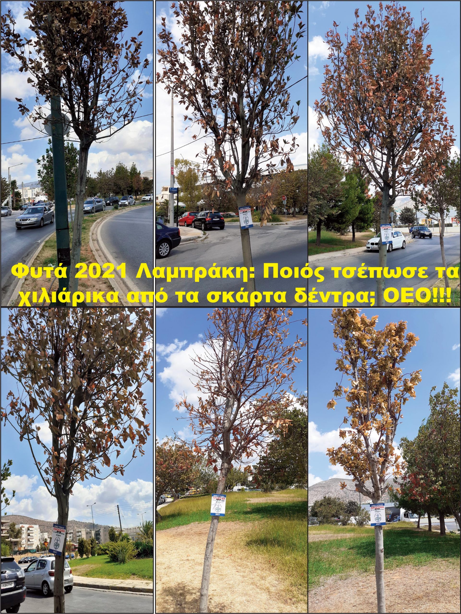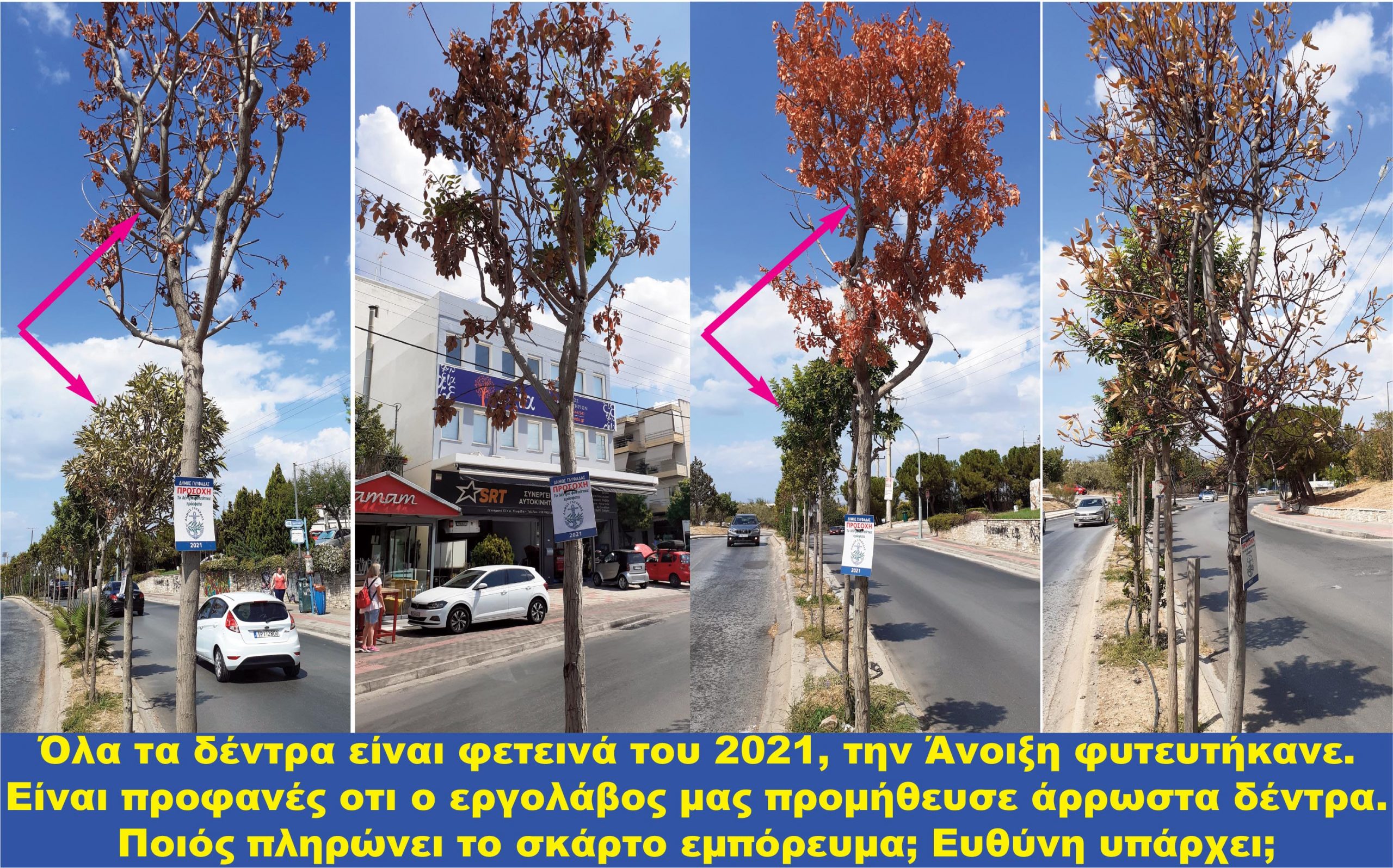Γιατί ξεράθηκαν; πόσο υγιή ήταν; γιατί ο γεωπόνος του Δήμου τα ενέκρινε; γιατί η επιτροπή έδωσε το οκ στην φύτευση;