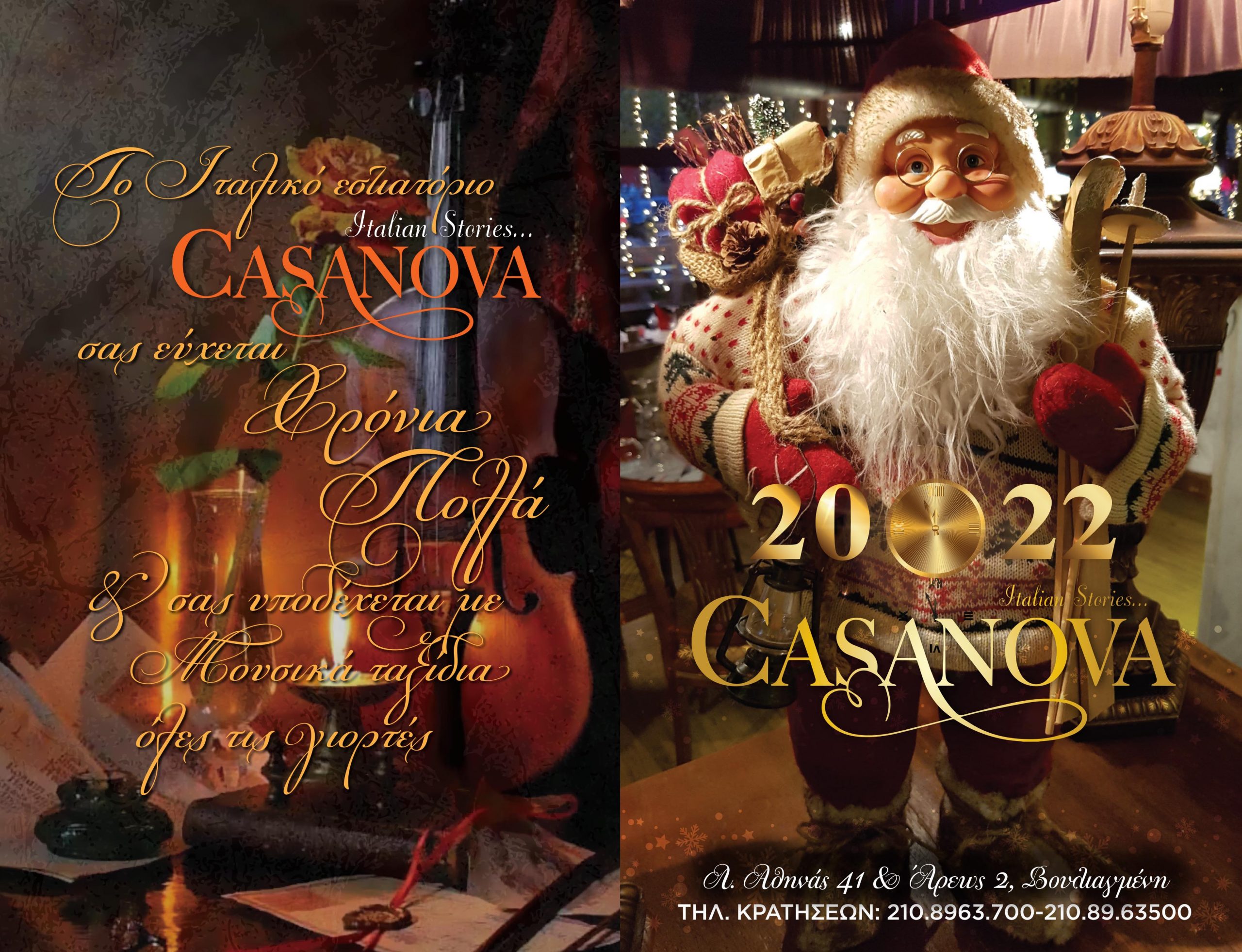 Σας προτείνουμε ανεπιφύλακτα για τις εορταστικές εξόδους σας το Ιταλικό εστιατόριο της Βουλιαγμένης, το CASANOVA.